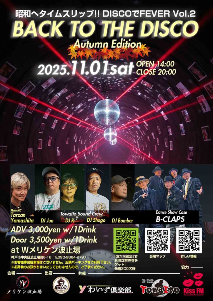 BACK TO THE DISCO AUTUMN EDITION in Wメリケン波止場