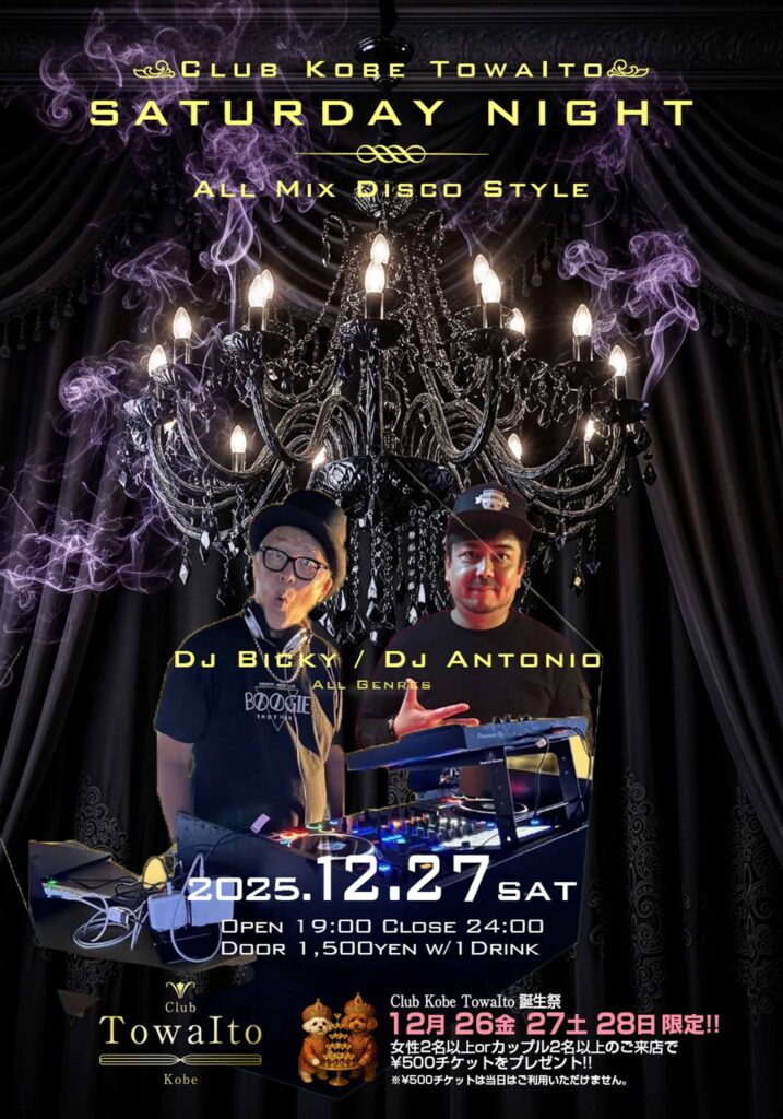 今年最後の土曜日12月27日は大阪で活躍中のDj Bicky & Dj AntonioがKobeTowaItoに登場!完全DiscoStyleでお届けします!12月はClubKobeTowaIto誕生祭ということでお得なキャンペーンも実施中!